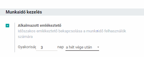 Itt lentebb a beállításoknál, emlékeztetőt is be lehet állítani, ami email formájában figyelmezteti a munkavállalót a munkaidő kezelésére.